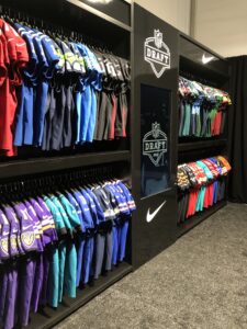 Behind the scenes, STAHLS’ had color-coordinated print jerseys on display at the 2023 NFL Draft. Photo courtesy of STAHLS’